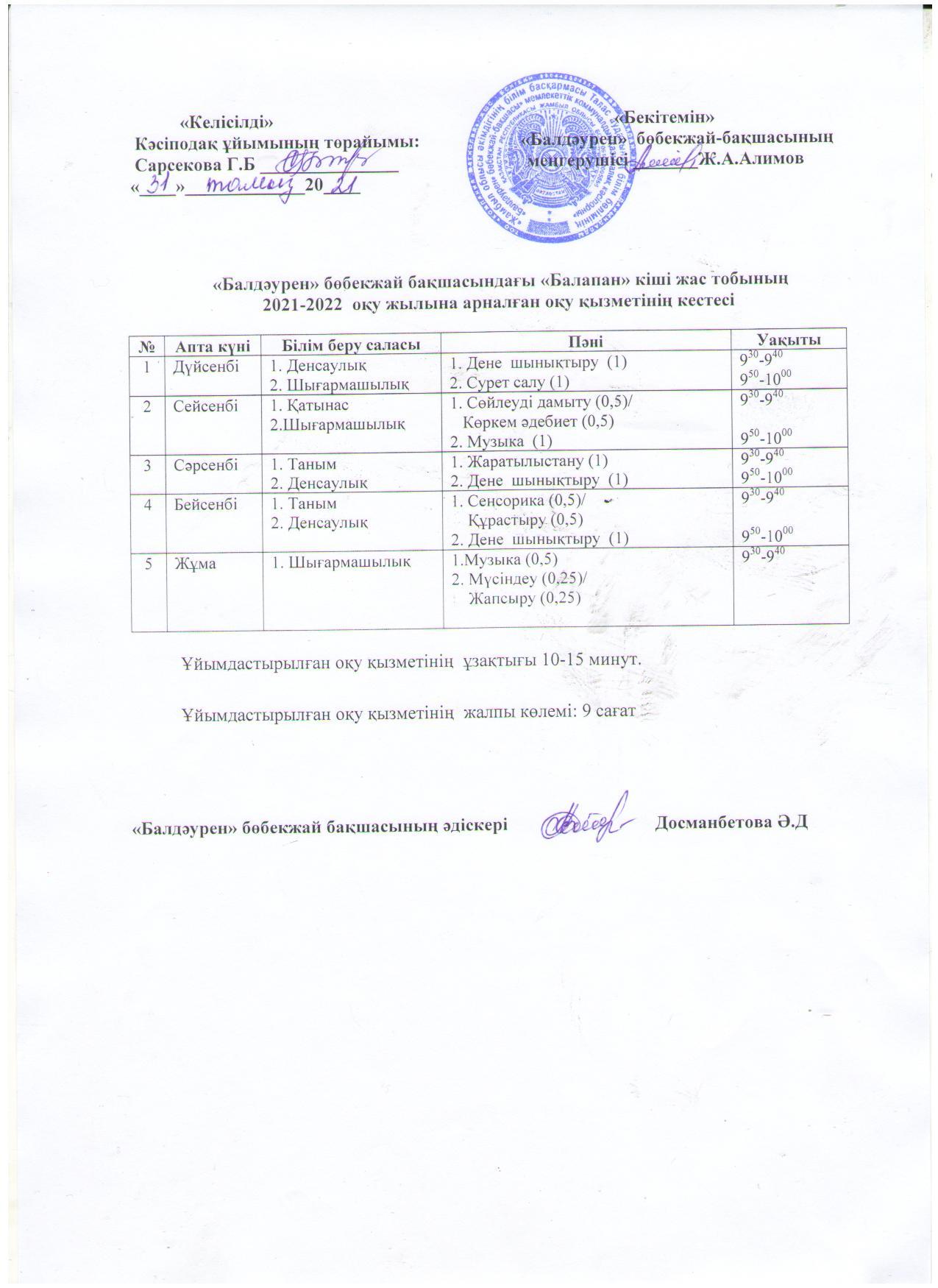 "Балапан" кіші жас тобы » «Балдәурен» бөбекжай-бақшасы» МКҚК