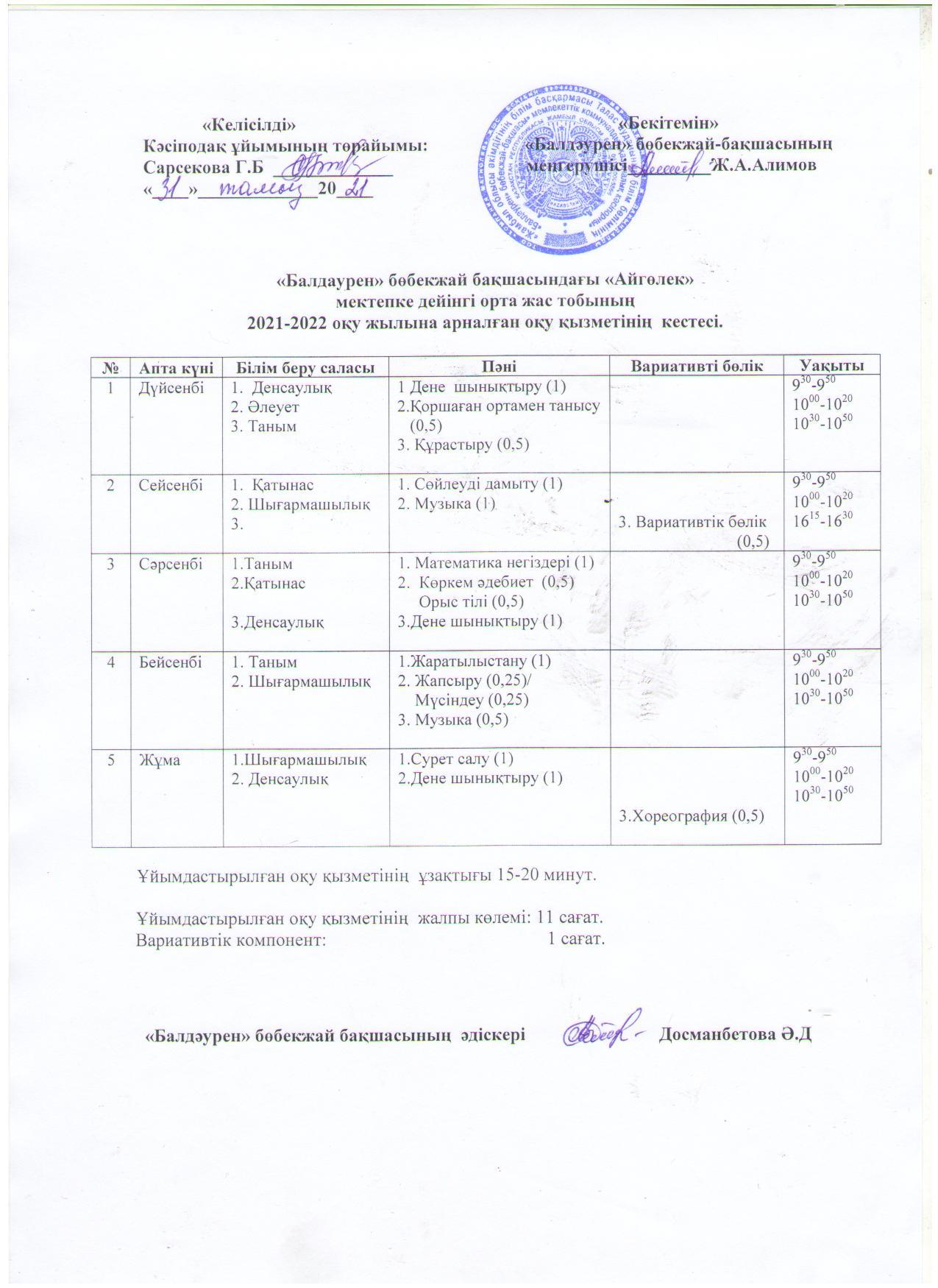 "Айгөлек" орта жас тобы » «Балдәурен» бөбекжай-бақшасы» МКҚК
